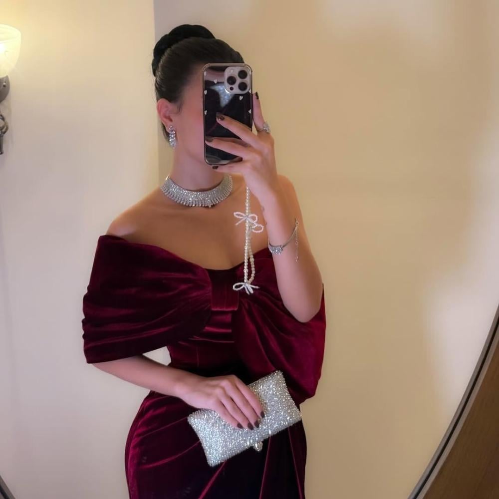 لفستان الأسود ميكادو يتميز بتصميم فخم يجمع بين الأناقة والبساطة. يأتي الفستان بقصة ضيقة عند الخصر ليبرز جمال القوام، ثم ينسدل بتنورة واسعة وطويلة تصل حتى الأرض، مما يمنح الإطلالة طابعاً ملكياً. منطقة الصدر بقصة ناعمة ” أو بتصميم مستقيم يعكس الأناقة الكلاسيكية، مع حمالات رفيعة تضيف لمسة أنثوية ناعمة. قماش المخمل يمنح الفستان لمعة خفيفة تحت الضوء، ويعزز من فخامته ورقيّه. يمكن تنسيق هذا الفستان مع إكسسوارات بسيطة كحقيبة صغيرة أو حلي ذهبية ناعمة، ليكتمل المظهر بأسلوب أنيق وجذاب يناسب المناسبات الراقية