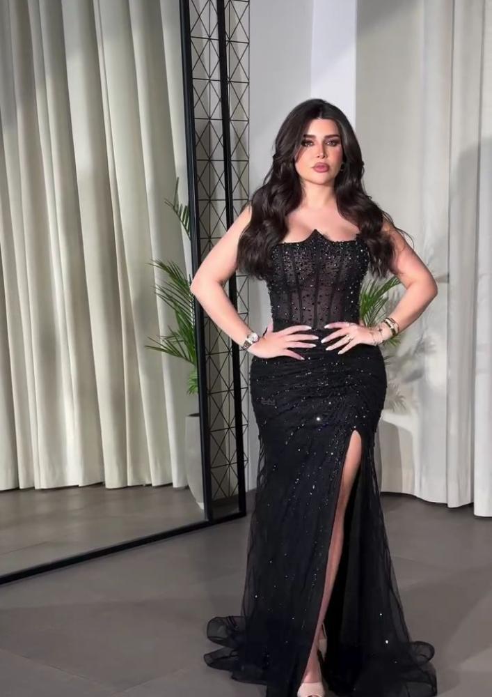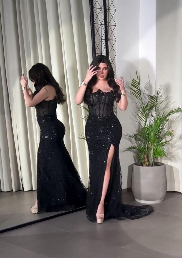 فستان اسود ماسك ع جسم