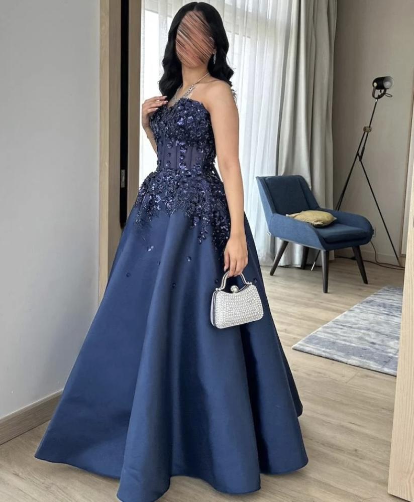 فستان ملكة الجمال الرائع هو الخيار المثالي لأي سيدة تبحث عن الأناقة والفخامة في فستان سهرة. مصمم بأناقة ودقة فائقة، ومصنوع من أجود أنواع الأقمشة بلون أزرق غامق الجذاب.