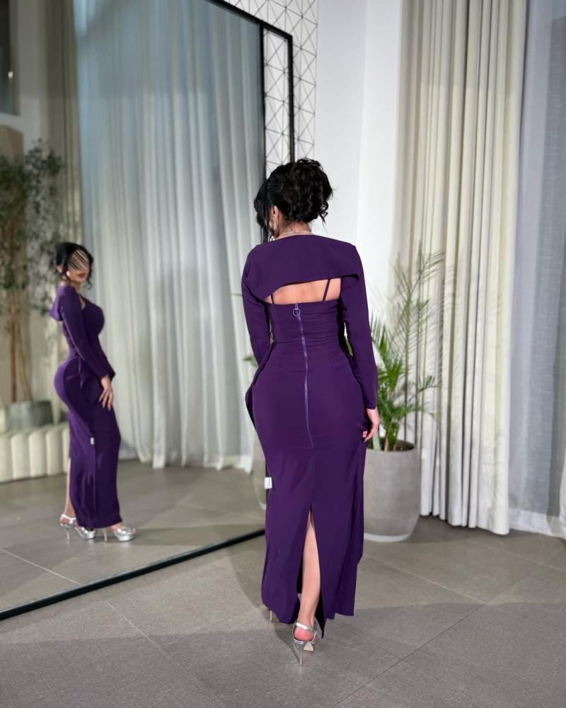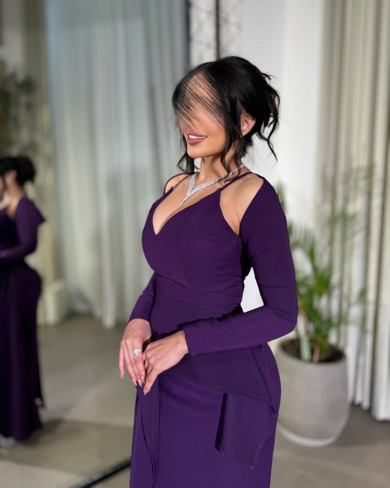 تألقي بإطلالة تخطف الأنظار مع فستان “جاذبية البنفسج” المصمم بلون بنفسجي ملكي يفيض بالأناقة والرقي. يتميز بقصة ضيقة تُبرز جمال القوام، وتصميم الكتف المكشوف لإطلالة عصرية ومفعمة بالأنوثة. يضفي التناسق بين الطبقات الأمامية والخصر المحدد لمسة من الفخامة العصرية، بينما يكتمل المظهر مع فتحة الساق الجانبية التي تمنحك حرية الحركة وسحر الإطلالة. الخيار الأمثل لسهراتك الراقية ومناسباتك الخاصة