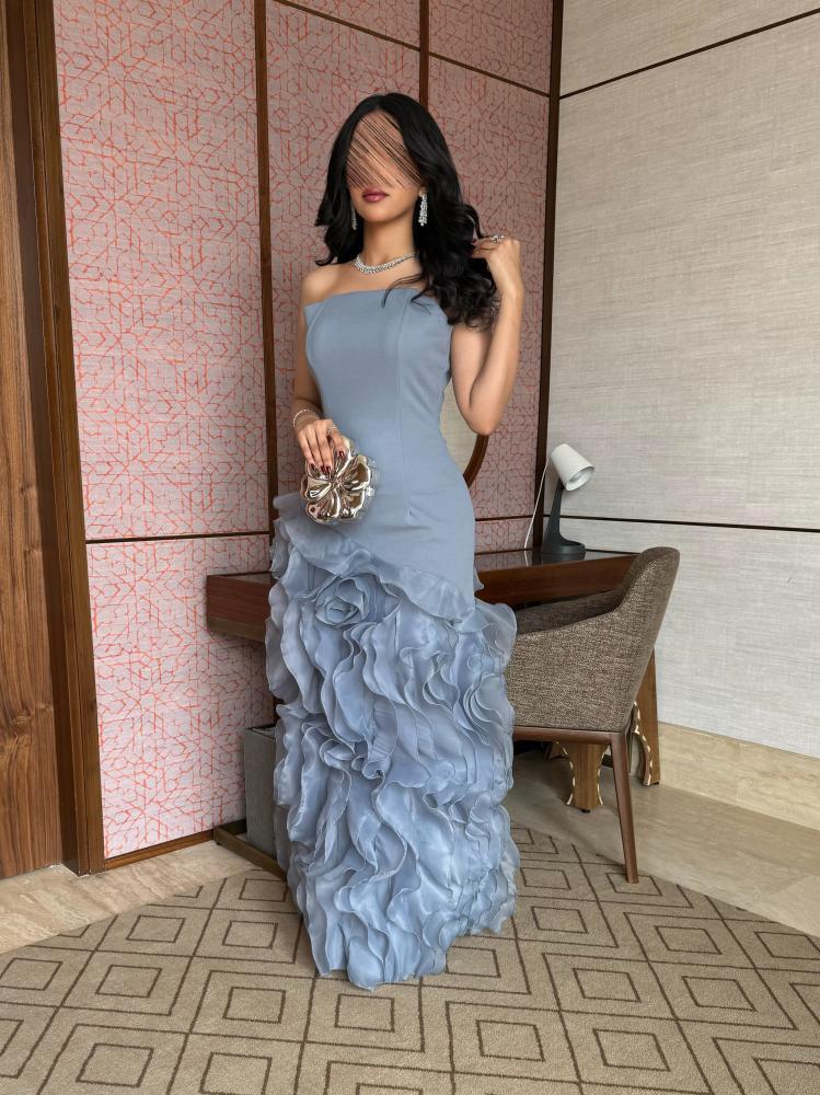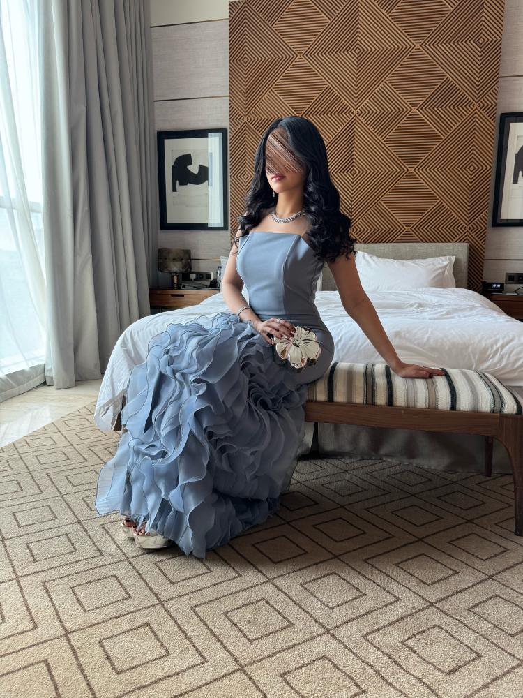 لفستان الأسود ميكادو يتميز بتصميم فخم يجمع بين الأناقة والبساطة. يأتي الفستان بقصة ضيقة عند الخصر ليبرز جمال القوام، ثم ينسدل بتنورة واسعة وطويلة تصل حتى الأرض، مما يمنح الإطلالة طابعاً ملكياً. منطقة الصدر بقصة ناعمة ” أو بتصميم مستقيم يعكس الأناقة الكلاسيكية، مع حمالات رفيعة تضيف لمسة أنثوية ناعمة. قماش المخمل يمنح الفستان لمعة خفيفة تحت الضوء، ويعزز من فخامته ورقيّه. يمكن تنسيق هذا الفستان مع إكسسوارات بسيطة كحقيبة صغيرة أو حلي ذهبية ناعمة، ليكتمل المظهر بأسلوب أنيق وجذاب يناسب المناسبات الراقية
