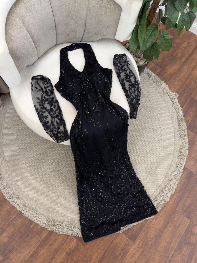 فستان اسود ماسك مع اكمام