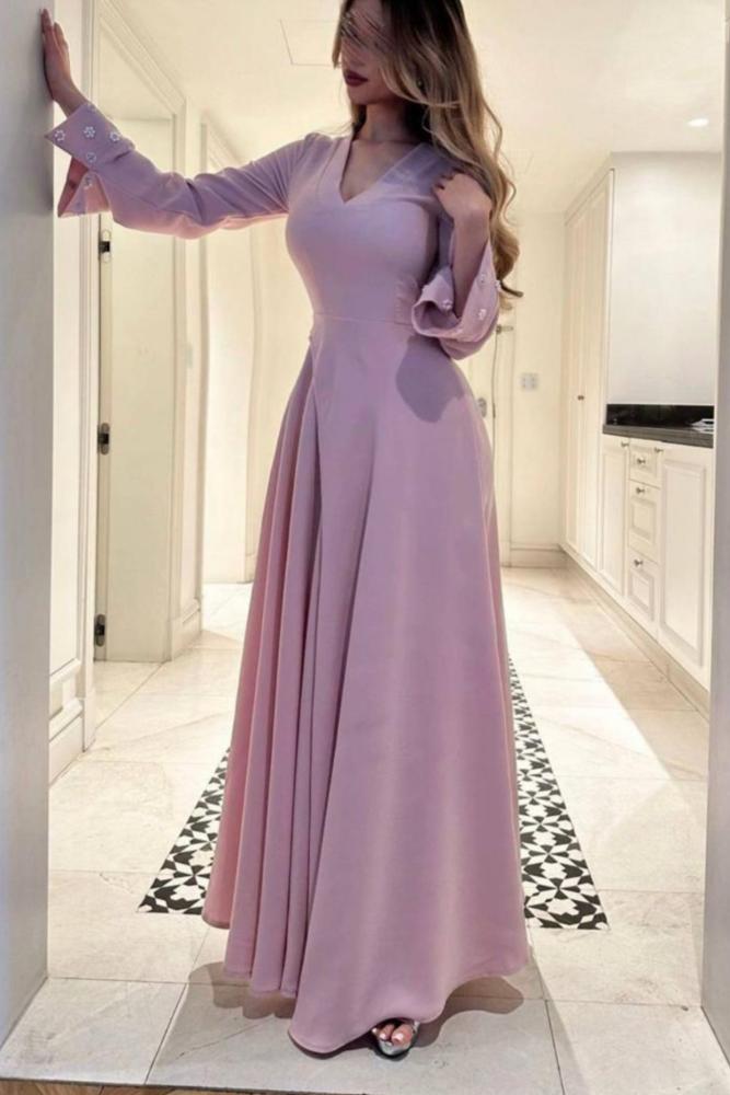 تألقي بإطلالة ساحرة مع هذا الفستان الأنيق بلونه الوردي الهادئ الذي يعكس النعومة والرقي. يتميز الفستان بقصة طويلة وانسيابية تمنحك إحساسًا بالفخامة والراحة، مع تصميم بأكمام طويلة مزينة بأزرار لؤلؤية تضفي لمسة ملكية راقية.