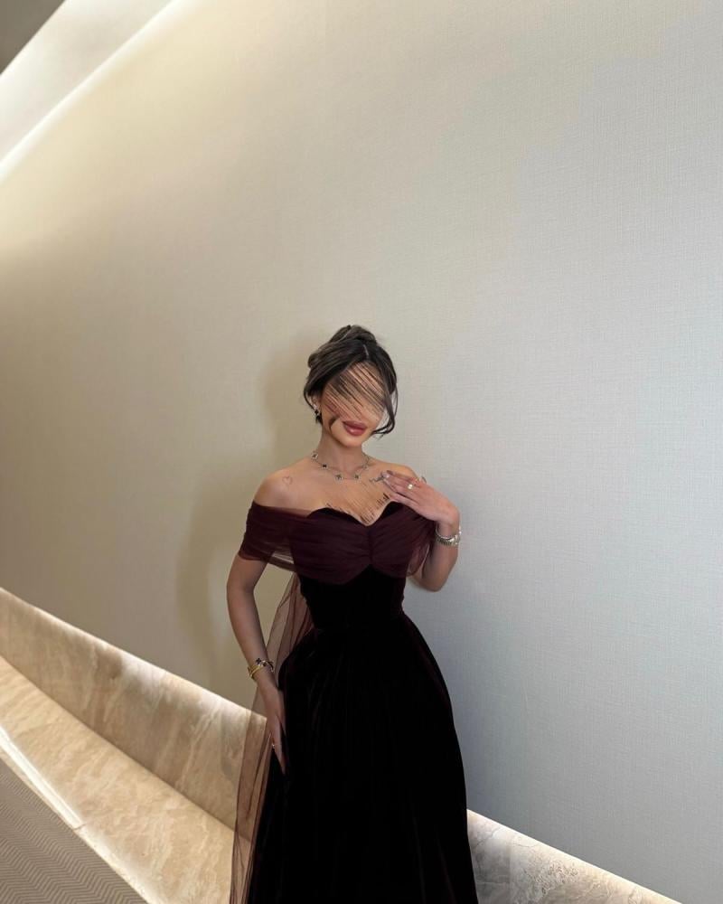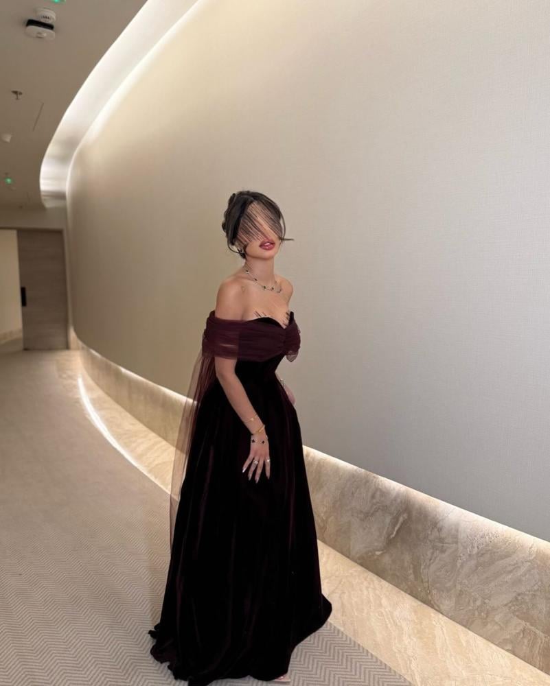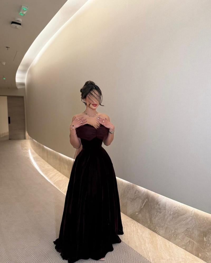 لفستان الأسود ميكادو يتميز بتصميم فخم يجمع بين الأناقة والبساطة. يأتي الفستان بقصة ضيقة عند الخصر ليبرز جمال القوام، ثم ينسدل بتنورة واسعة وطويلة تصل حتى الأرض، مما يمنح الإطلالة طابعاً ملكياً. منطقة الصدر بقصة ناعمة ” أو بتصميم مستقيم يعكس الأناقة الكلاسيكية، مع حمالات رفيعة تضيف لمسة أنثوية ناعمة. قماش المخمل يمنح الفستان لمعة خفيفة تحت الضوء، ويعزز من فخامته ورقيّه. يمكن تنسيق هذا الفستان مع إكسسوارات بسيطة كحقيبة صغيرة أو حلي ذهبية ناعمة، ليكتمل المظهر بأسلوب أنيق وجذاب يناسب المناسبات الراقية
