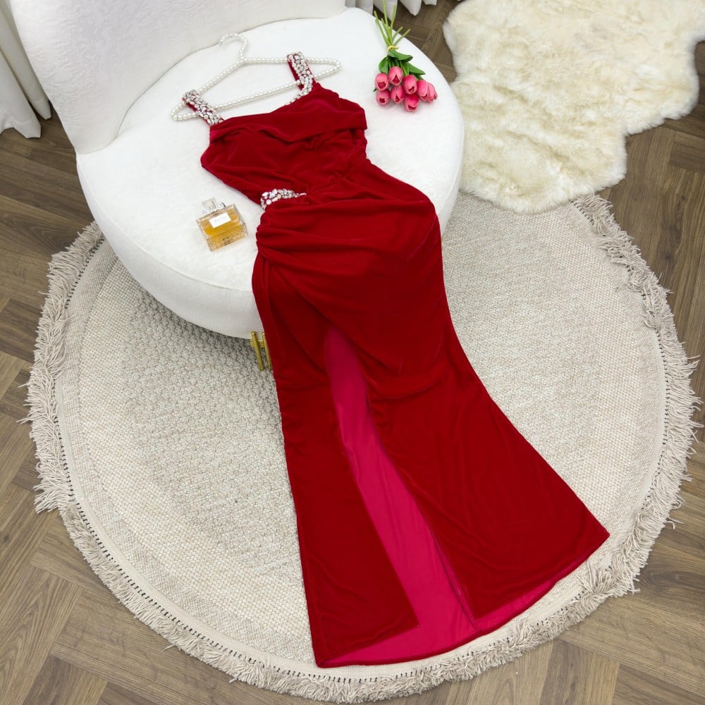 فستان احمر ناعم وأنيق